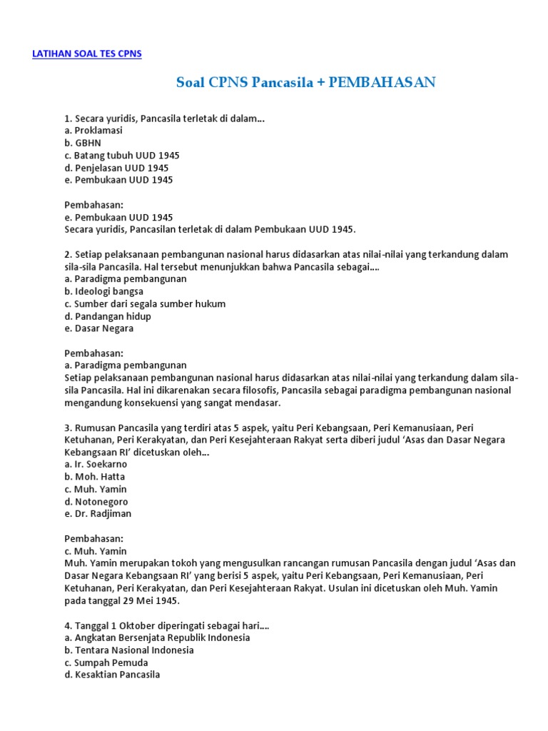 Home soal tema sbmptn cpns. Contoh soal cpns tes wawasan kebangsaan : Pembahasan soal permutasi, latihan soal permutasi beserta pembahasannya, contoh soal permutasi, rumus permutasi. Tes kemampuan bidang pendidikan merupakan bagian dari seleksi kompetensi bidang skb yang di ujikan saat seleksi calon pegawai negeri sipil cpns 2019. Salah satu cara untuk menjadi pegawai negeri sipil adalah dengan mengikuti program ikatan dinas di salah satu sekolah tinggi akuntansi negara yang berada dibawah naungan kementrian.